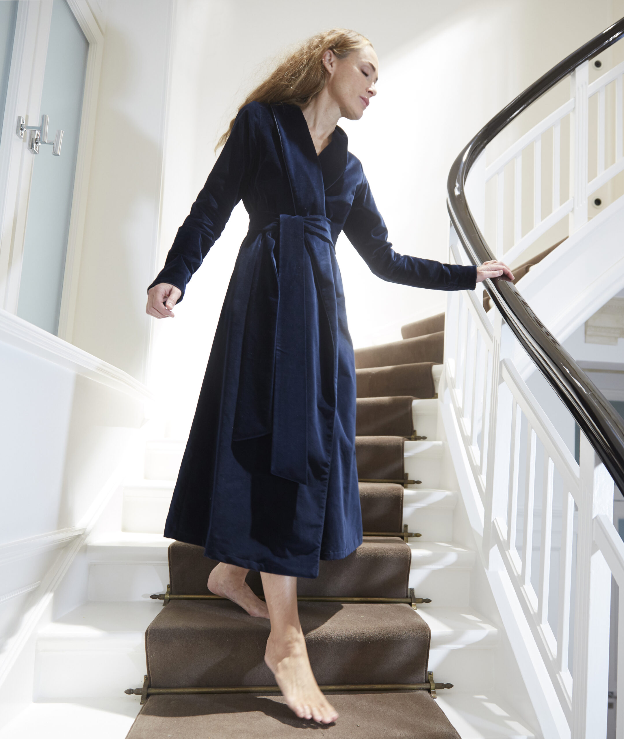 Unsere Samt Morgenmäntel werden aus hochwertigem, leichtem 100% Baumwollsamt gefertigt und mit einem geschmeidigen Baumwollfutter “silktouch” versehen. Jedes Stück wird liebevoll und mit großer Sorgfalt in Deutschland hergestellt. Der taillierte Schnitt, der klassische Schalkragen und die rechtsseitige, verdeckte Tasche verleihen diesem Morgenmantel einen zeitlosen Charme und eine ansprechende Funktionalität.
